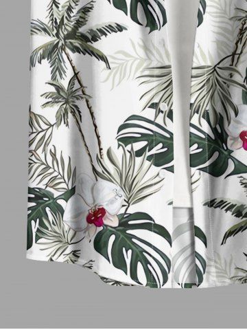 Plus Size Coconut Tree Tropical Flower Leaf Print Buttons Pocket Hawaii Shirt For Men - White - Xl