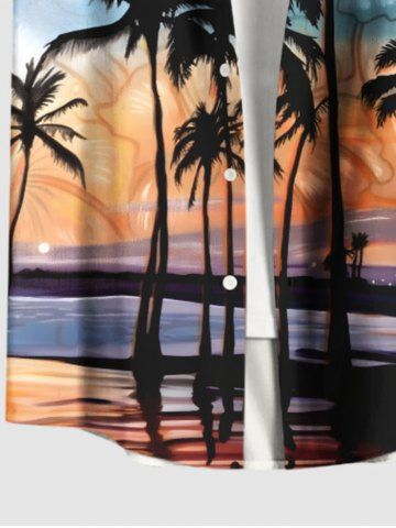 Short Sleeves Shirts > Plus Size Coconut Tree Tropical Flowers Seascape Print Buttons Pocket Hawaii Shirt For Men