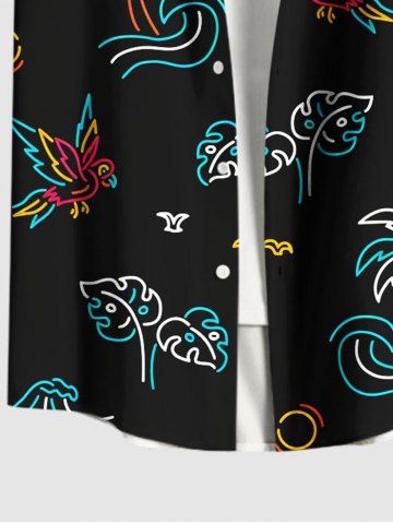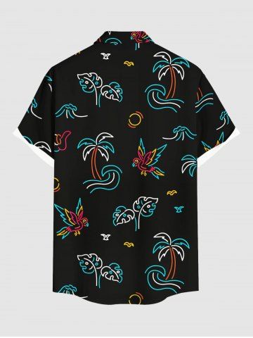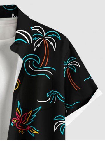 Plus Size Coconut Tree Tropical Leaf Bird Print Buttons Pocket Hawaii Shirt For Men - Black - 5xl