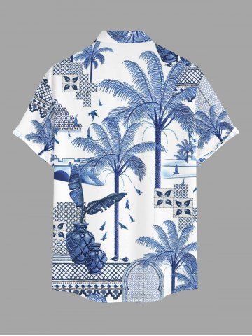 Plus Size Coconut Tree Tropical Leaf Blue and White Porcelain Style Print Hawaii Button Pocket Shirt For Men - Blue - 5xl