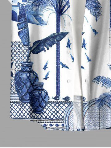 Plus Size Coconut Tree Tropical Leaf Blue and White Porcelain Style Print Hawaii Button Pocket Shirt For Men - Blue - 6xl