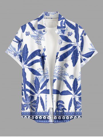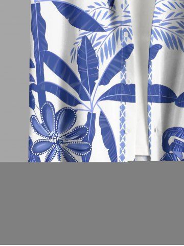 Plus Size Coconut Tree Tropical Leaf Blue and White Porcelain Style Print Hawaii Shirt For Men - Sky Blue - M