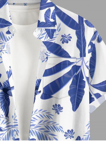 Short Sleeves Shirts > Plus Size Coconut Tree Tropical Leaf Blue and White Porcelain Style Print Hawaii Shirt For Men