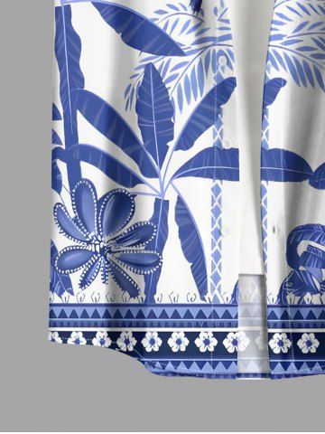 Plus Size Coconut Tree Tropical Leaf Blue and White Porcelain Style Print Hawaii Shirt For Men - Sky Blue - 3xl