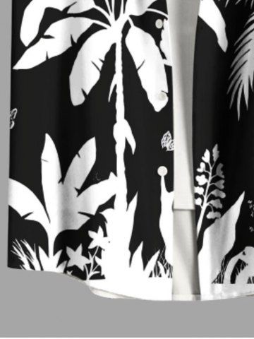 Plus Size Coconut Tree Tropical Leaf Flamingo Butterfly Print Hawaii Button Pocket Shirt For Men - Black - 4xl