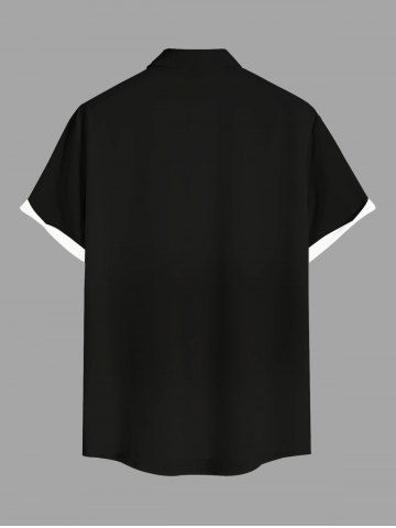 Plus Size Coconut Tree Tropical Leaf Flamingo Butterfly Print Hawaii Button Pocket Shirt For Men - Black - 6xl