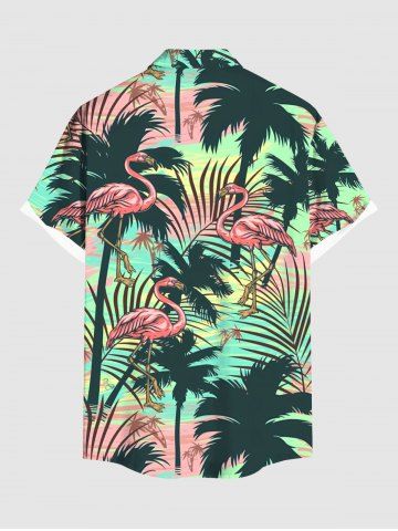 Plus Size Coconut Tree Tropical Leaf Flamingo Print Hawaii Button Pocket Shirt For Men - Green - M