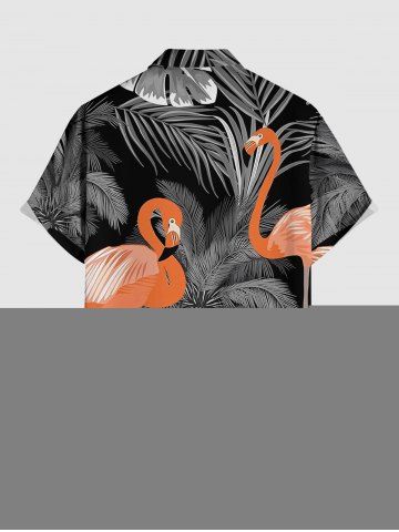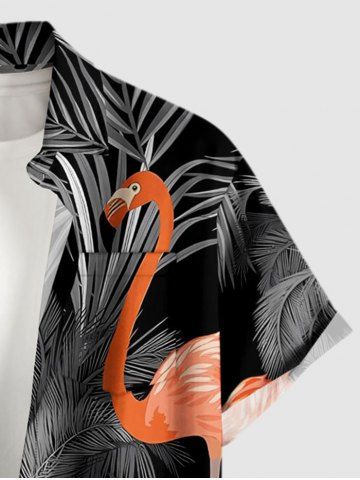 Plus Size Coconut Tree Tropical Leaf Flamingo Print Hawaii Button Pocket Shirt For Men - Black - L