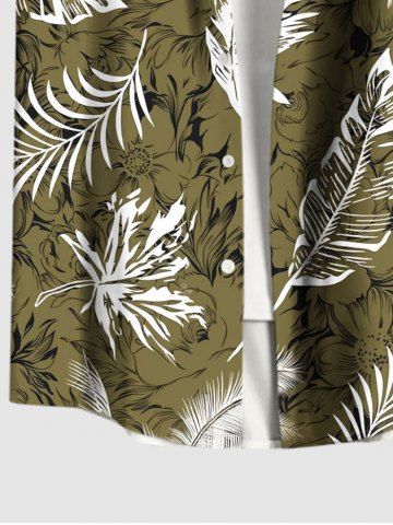Short Sleeves Shirts > Plus Size Coconut Tree Tropical Leaf Flower Print Hawaii Button Pocket Shirt For Men