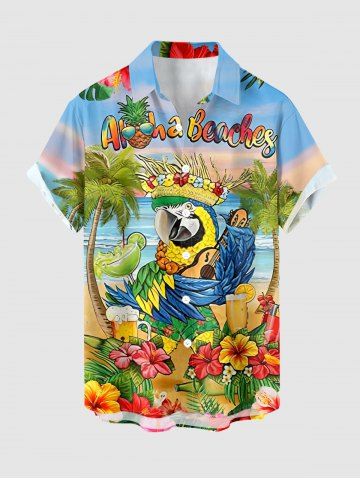 Plus Size Coconut Tree Tropical Leaf Hibiscus Flower Parrot Hula Print Hawaii Shirt For Men - Sky Blue - 3xl