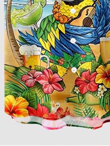 Short Sleeves Shirts > Plus Size Coconut Tree Tropical Leaf Hibiscus Flower Parrot Hula Print Hawaii Shirt For Men