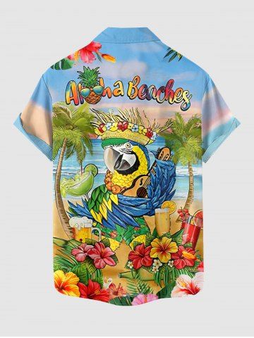 Plus Size Coconut Tree Tropical Leaf Hibiscus Flower Parrot Hula Print Hawaii Shirt For Men - Sky Blue - 5xl