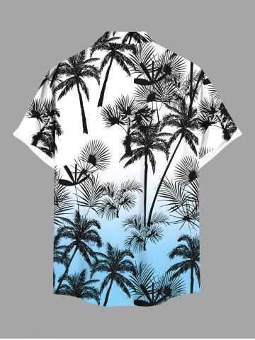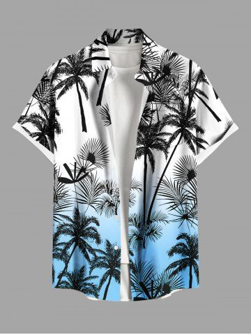 Short Sleeves Shirts > Plus Size Coconut Tree Tropical Leaf Ombre Colorblock Print Buttons Pocket Hawaii Shirt For Men