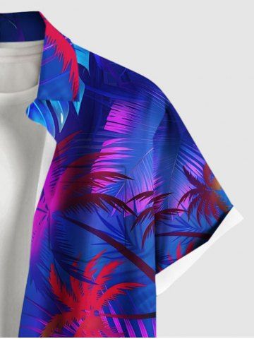 Plus Size Coconut Tree Tropical Leaf Print Buttons Pocket Hawaii Shirt For Men - Purple - M