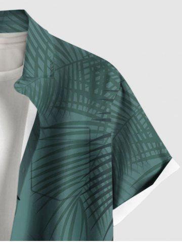 Plus Size Coconut Tree Tropical Leaf Print Buttons Pocket Hawaii Shirt For Men - Green - 2xl