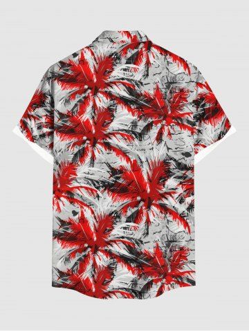 Plus Size Coconut Tree Tropical Leaf Print Buttons Pocket Hawaii Shirt For Men - Red - 4xl