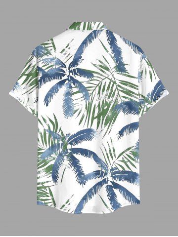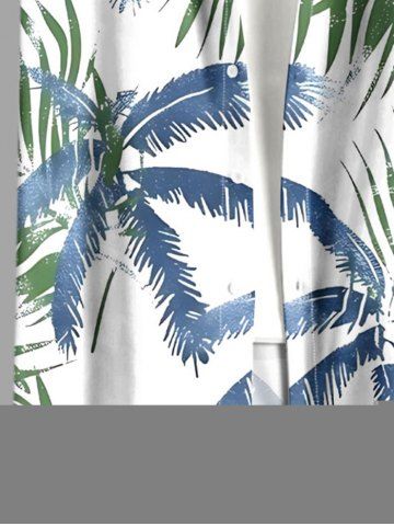 Plus Size Coconut Tree Tropical Leaf Print Buttons Pocket Hawaii Shirt For Men - Blue - M