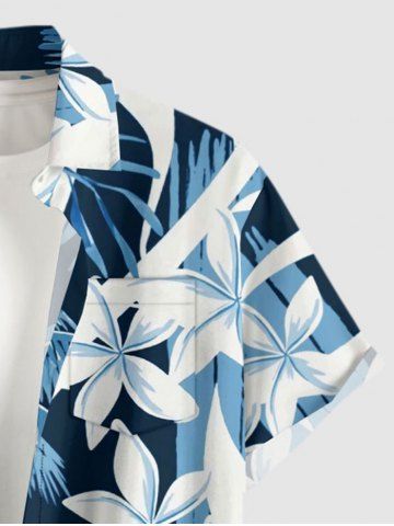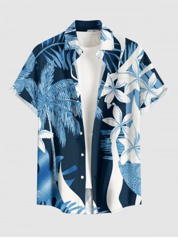 Plus Size Coconut Tree Tropical Leaf Sea Flower Print Hawaii Button Pocket Shirt For Men - Cadetblue - S