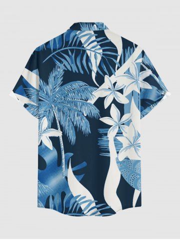 Plus Size Coconut Tree Tropical Leaf Sea Flower Print Hawaii Button Pocket Shirt For Men - Cadetblue - 2xl