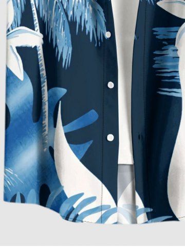 Plus Size Coconut Tree Tropical Leaf Sea Flower Print Hawaii Button Pocket Shirt For Men - Cadetblue - 5xl