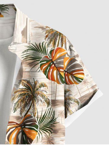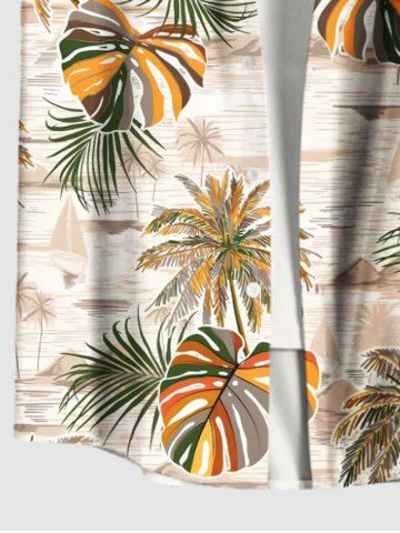 Plus Size Coconut Tree Tropical Leaf Sea Print Hawaii Button Pocket Shirt For Men - Orange - L