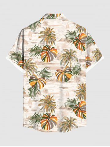 Short Sleeves Shirts > Plus Size Coconut Tree Tropical Leaf Sea Print Hawaii Button Pocket Shirt For Men