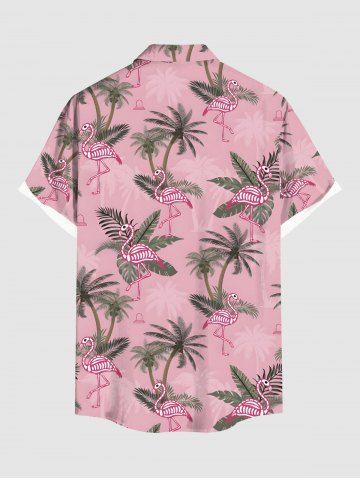 Plus Size Coconut Tree Tropical Leaves Flamingo Print Hawaii Button Pocket Shirt For Men - Light Pink - 4xl