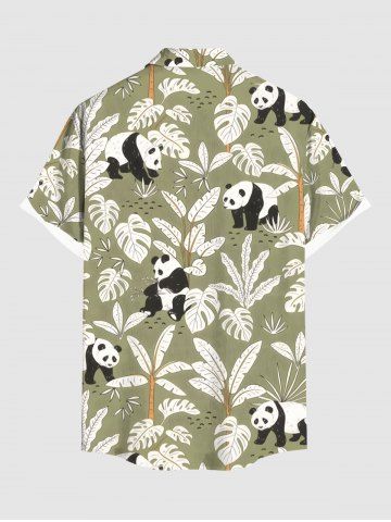 Short Sleeves Shirts > Plus Size Coconut Tree Tropical Leaves Panda Print Hawaii Button Pocket Shirt For Men