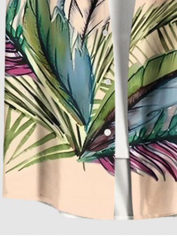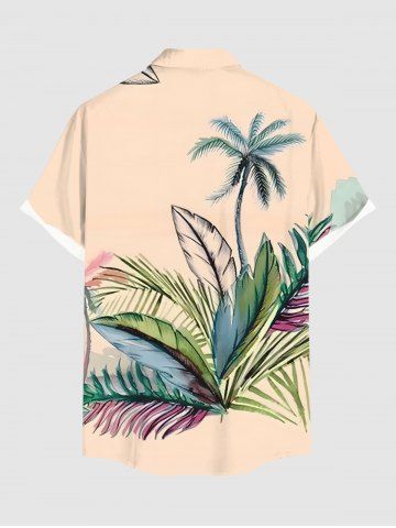 Plus Size Coconut Tree Tropical Leaves Print Hawaii Button Pocket Shirt For Men - Champagne - 6xl