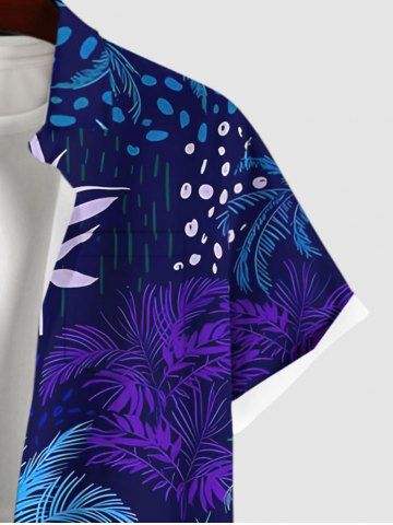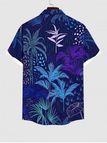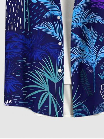 Plus Size Coconut Tree Tropical Leaves Print Hawaii Ombre Button Pocket Shirt For Men - Deep Blue - M
