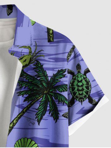 Plus Size Coconut Tree Turtle Shell Flowers Pineapple Print Buttons Pocket Hawaii Shirt For Men - Purple - 6xl