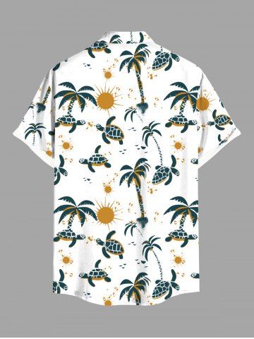 Plus Size Coconut Tree Turtle Sun Print Buttons Pocket Hawaii Shirt For Men - White - M