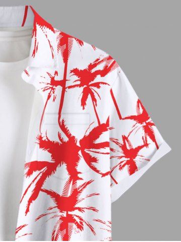 Plus Size Coconut Tree Two Tone Print Hawaii Button Pocket Shirt For Men - White - 3xl
