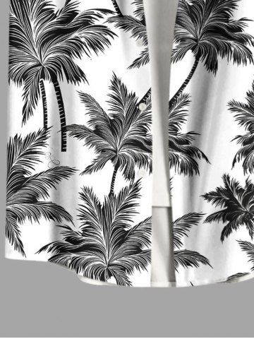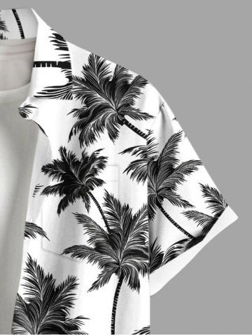 Plus Size Coconut Tree Two Tone Print Hawaii Button Pocket Shirt For Men - White - 5xl