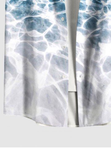 Plus Size Coconut Tree Water Ripples Print Buttons Pocket Hawaii Shirt For Men - Deep Blue - 6xl