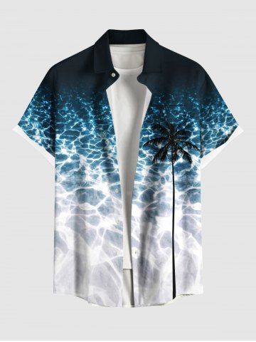 Short Sleeves Shirts > Plus Size Coconut Tree Water Ripples Print Buttons Pocket Hawaii Shirt For Men