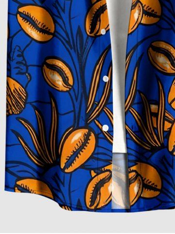 Plus Size Coffee Beans Branch Print Hawaii Button Pocket Shirt For Men - Navy Blue - M