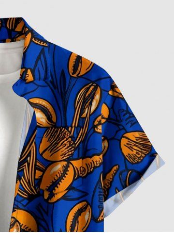 Plus Size Coffee Beans Branch Print Hawaii Button Pocket Shirt For Men - Navy Blue - Xl
