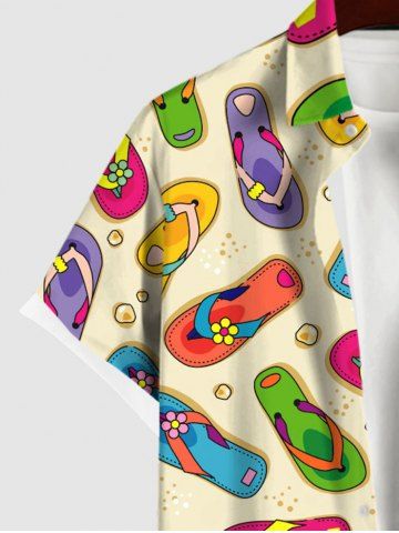 Plus Size Coloful Flip-Flops Stones Print Buttons Pocket Hawaii Shirt For Men - Yellow - L