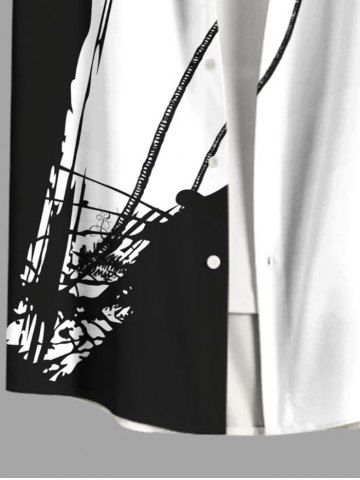 Plus Size Colorblock Coconut Tree Cliff Print Buttons Pocket Hawaii Shirt For Men - White - S