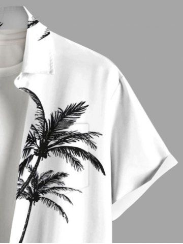 Plus Size Colorblock Coconut Tree Cliff Print Buttons Pocket Hawaii Shirt For Men - White - 6xl