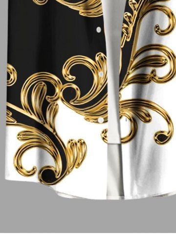 Plus Size Colorblock Floral Pattern Print Buttons Pocket Shirt For Men - White - M