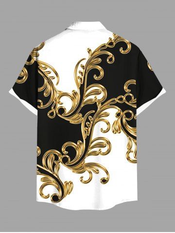 Plus Size Colorblock Floral Pattern Print Buttons Pocket Shirt For Men - White - 2xl