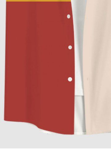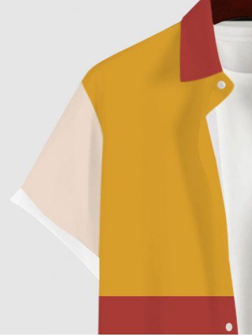 Short Sleeves Shirts > Plus Size Colorblock Print Pocket Button Shirt For Men