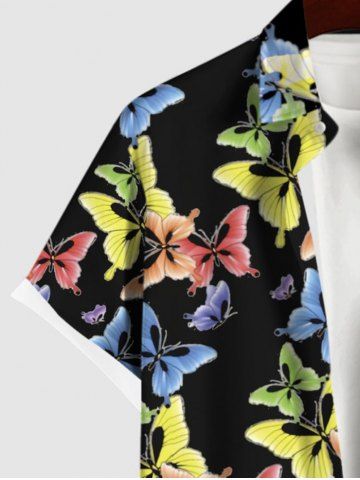 Plus Size Colorful Butterfly Print Buttons Pocket Hawaii Shirt For Men - Black - 4xl