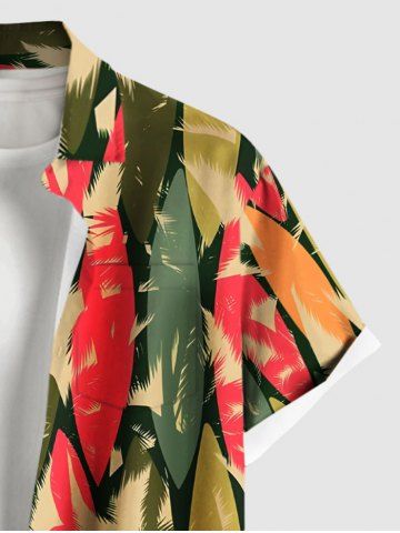 Short Sleeves Shirts > Plus Size Colorful Coconut Tree Colorblock Print Hawaii Button Pocket Shirt For Men