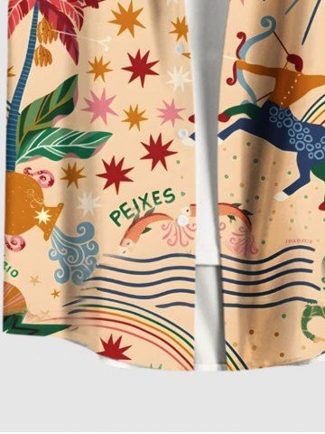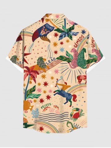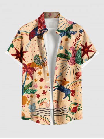 Plus Size Colorful Coconut Tree Leopard Stars River Print Hawaii Button Pocket Shirt For Men - Light Coffee - Xl