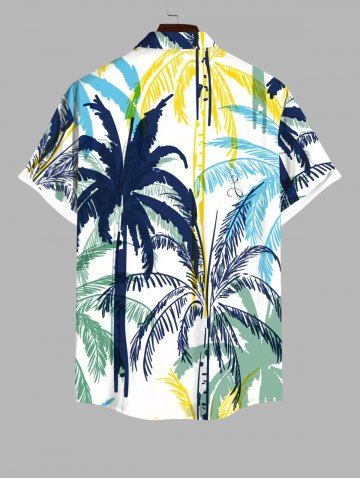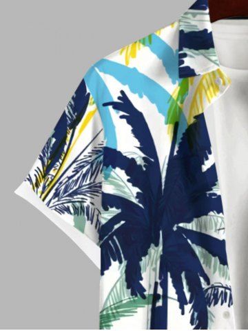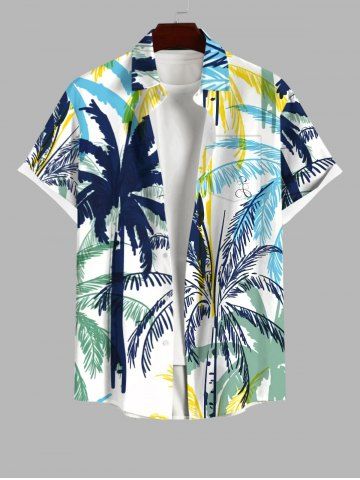 Short Sleeves Shirts > Plus Size Colorful Coconut Tree Print Buttons Pocket Hawaii Shirt For Men