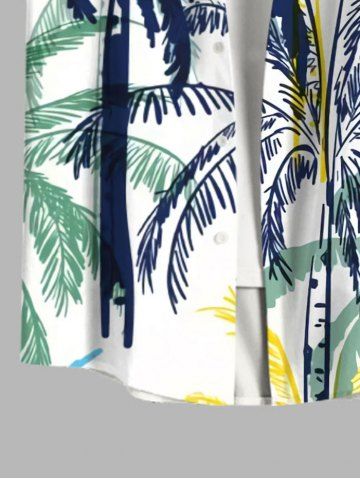 Plus Size Colorful Coconut Tree Print Buttons Pocket Hawaii Shirt For Men - Multi-a - 4xl