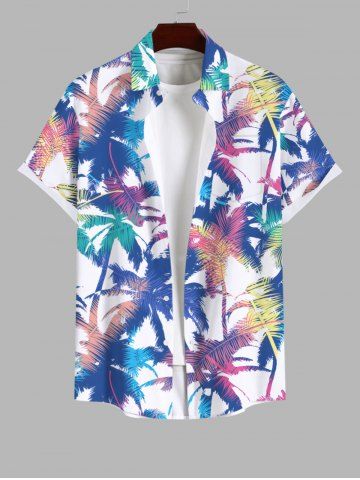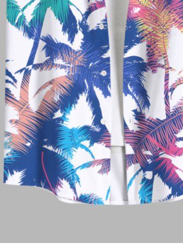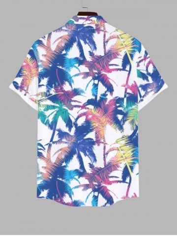 Plus Size Colorful Coconut Tree Print Buttons Pocket Hawaii Shirt For Men - Multi-a - 2xl